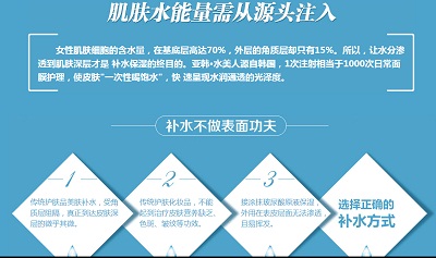 导读:一直保持年轻是每个女人的愿望,然而水分流失却是肌肤的大敌,单纯通过普通养护难以逆转。目前备受MM们青睐的水光针强效补水!水光美肤就是将拥有高水分保持力的透明质酸剂玻尿酸立体均匀地渗透于皮肤内,能达到美白、去细纹、收缩毛孔、舒缓皮肤以及促进皮